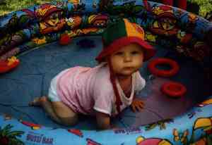 In our small pool. I prefer grandma's pool, it's much bigger.....